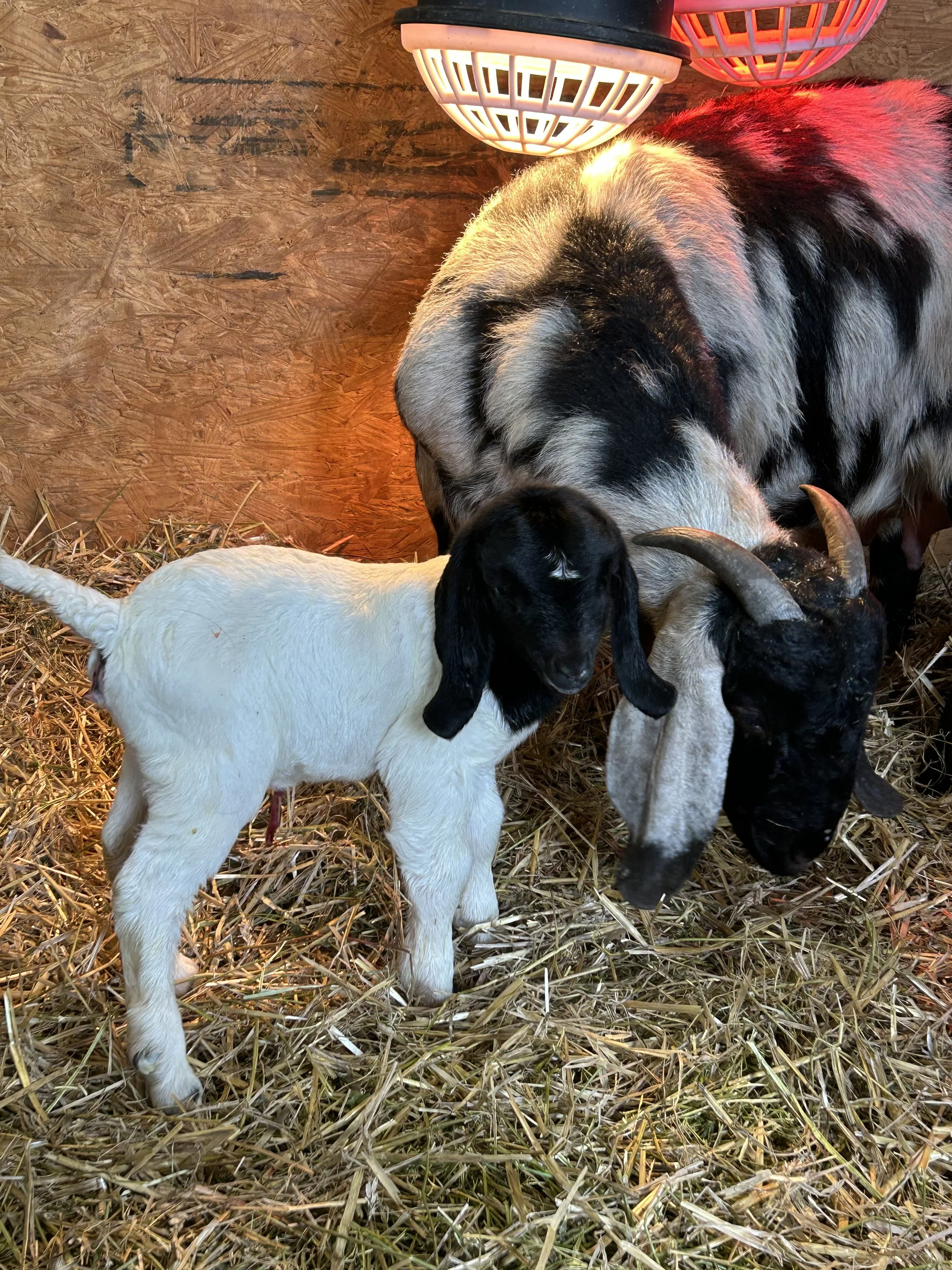 And Charley isn’t the only new resident on the farm. It’s kidding season for all the goats that my nieces raise and show, and I would like to introduce you to possibly the cutest little girl goat that you have EVER seen.